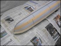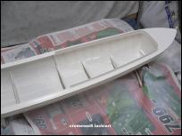 Der Rumpf, die Abdeckung im Heck und die Kajüte wurden noch einmal mit 600er Nassschmirgel abgezogen und cremeweiß lackiert.