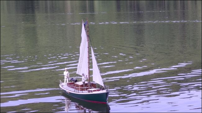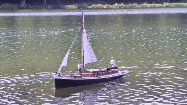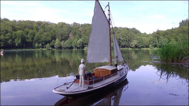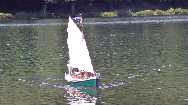 Bei mäßigem Wind ging es dann los. Zuerst wurde einmal nur mit dem Motor als Antrieb gefahren um zu sehen wie sich der „Paulus“ auch mit gesetztem Segel verhält. Er nahm gut Fahrt auf und ist recht flott unterwegs. Trotz des Segels krängte er sehr wenig. Dann wurde der Motor ausgeschaltet und es wurde versucht nur mit dem Segel voranzukommen. Relativ langsam nahm er Fahrt auf, stand auch mal still und zeigte wenig Abrieb aufgrund des langen Kiels.