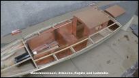 Um dem Rumpf mehr Stabilität zu verleihen und eine Auflage für das Deck zu erhalten wurden entsprechend der Öffnungen (Ladeluke, Kajüte, Sitzgruppe und Maschinenraum) Decksspanten und Stringer eingezogen.