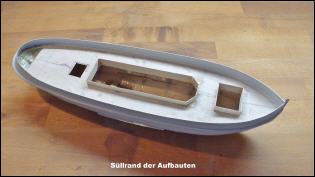 Vorgesehen für das Deck ist 0,4 mm Flugzeugsperrholz, der Aufbau aus 0,5 mm FR-4 und der Schornstein soll aus dünnwandigem Aluminiumrohr hergestellt werden.
