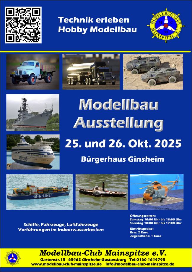 Nachdem ihr uns in der großen Welt des WWW, des World Wide Web gefunden habt, gibt es hier einige Hinweise die für euch von Interesse sein dürften. Auf dieser Seite findet ihr Informationen über den Modellbau-Club Mainspitze e.V. , seine Mitglieder und deren Modelle. Wir versuchen euch diese Info`s auf ansprechende, leicht zu findenden Seiten zu verfügung zu stellen. Folgender Grundsatz bleibt aber trotzdem bestehen:
