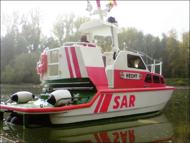 Die „Hecht“ ist eines von 4 Seenotrettungsbooten, die seit 1993 bei der DGzRS im Bereich zwischen Pommerscher und Mecklenburger Bucht eingesetzt werden. Die mit einem Jet-Antrieb ausgerüsteten Boddenboote sind durch ihre Bauart sehr wendig und auch in extrem flachen Wasser, unter anderem für den Tier- und Artenschutz einsetzbar. Die „Hecht“ (Station Zinnowitz) und ihre Schwesterboote „Butt“ (Station Kühlungsborn), „Barsch“ (Station Wustrow) und „Zander“ (Station Zingst) wurden von bei der Werft Fr. Fassemer & Co geplant und gebaut. Zu den einzelnen Verwendungsorten werden die Boote auf einem Spezialtrailer gebracht, der von einer Zugmaschine Unimog U 2150 L gezogen wird. |