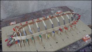Rumpfbau: Hier nur einige Eckdaten der Rumpfschale: Balsaholzplanken: 1,5 mm dick Feingewebe innen / außen: 80 / 25 Gramm