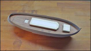 Vorgesehen für das Deck ist 0,4 mm Flugzeugsperrholz, der Aufbau aus 0,5 mm FR-4 und der Schornstein soll aus dünnwandigem Aluminiumrohr hergestellt werden.
