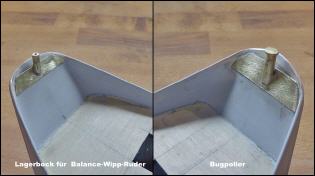 Erste Probefahrt Bald fand die erste Probefahrt des „Dollmann“ im Ika-See statt. Beladen mit rund 450 Gramm Blei wurde er an den Schlepper „Pfeil“ angehängt und gezogen. Klappte wirklich gut, man darf lediglich nicht zu enge Kurven fahren. Der „Pfeil“ hatte keine allzu große Mühe den Schleppkahn zu ziehen. Ein vorsichtiges abstoppen ist ratsam, damit der Kahn nicht hinten drauf fährt, so wie es auch in Wirklichkeit passiert war. Das montierte Balance-Wipp-Ruder mit seiner Befestigung bewährte sich hervorragend. Jetzt konnte es mit vollem Elan weitergehen.