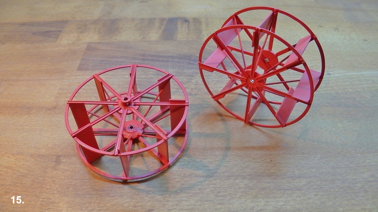 Fertige Räder, darunter diagonale Verstrebungen, Sie kamen ganz zum Schluss dran.