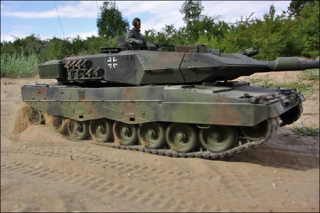 Kampfpanzermodell der Firma Tamiya. Wurde auf die Version 2A5 also mit kurzem Rohr umgebaut. |