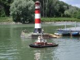 Bevor das imposante Feuerwerk vom Wasser aus abgeschossen wurde, zeigten im Sonnenuntergang zahlreiche Modellbauer den Zuschauern noch, wie schön ihre Werke mit Beleuchtung aussehen.