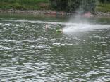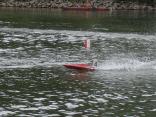 Bei ECO-Läufen um 11Uhr und 15Uhr mit je 3 Gruppen kämpften die Fahrer um die besten Plätze. Zwei ECO´s mussten nach den Läufen leider als vermisst gemeldet werden, diese sind nach dem Unterschneiden in der Kurve nicht mehr aufgetaucht. Beide Boote konnten aber schon am Montag von einem erfahrenen Taucher geborgen werden, sie steckten – mit der Spitze voran - zu 2/3 im schlammigen Grund fest.