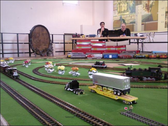 Auf der Bühne war eine riesige LGB Bahn aufgebaut. Das war natürlich der Renner bei den Kindern. |
