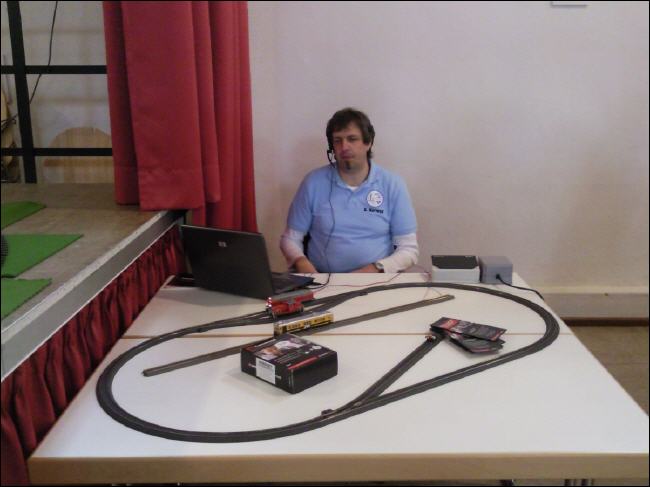 Direkt daneben gab es etwas Neues zu bestaunen. Hier wurden die Loks auf einem Testkreis per Sprache gesteuert. Das habe ich mir natürlich genauer angesehen. Dieses System kommt aus Dänemark. Es spricht aber auch Deutsch. Durch gesprochene Befehle führt die Lok alles aus was eine Zentrale schalten kann. Fazit: Ein Neuer Gag. Schauen wir mal wie es sich durchsetzt. |