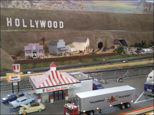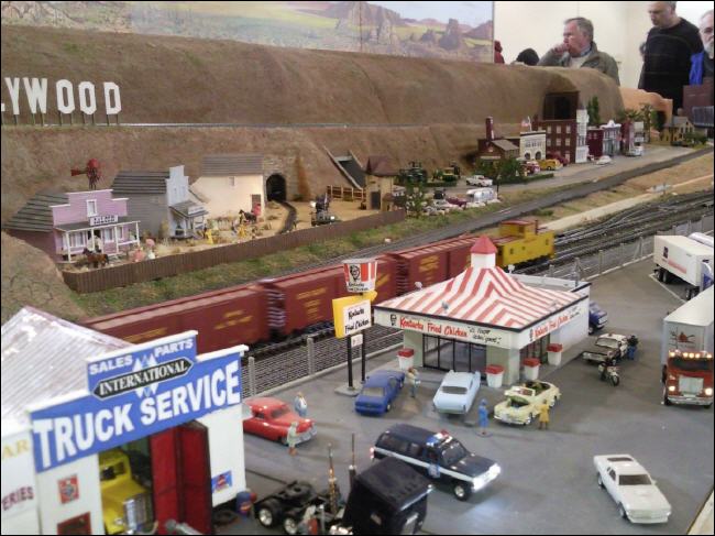 Die Neustädter hatten Ihre Amerika-Anlage aufgebaut. Diese hat in der letzten Zeit immer mehr Gestalt angenommen. Noch ist sie aber nicht fertig (Gibt es so etwas überhaupt?). Auf dieser Anlage faszinieren immer diese ewig langen Züge. |