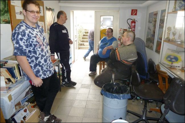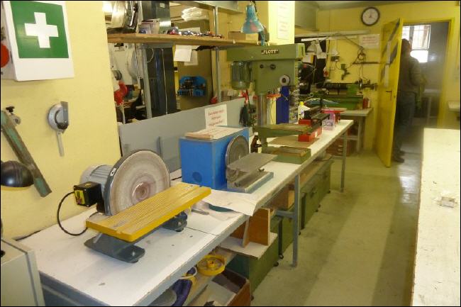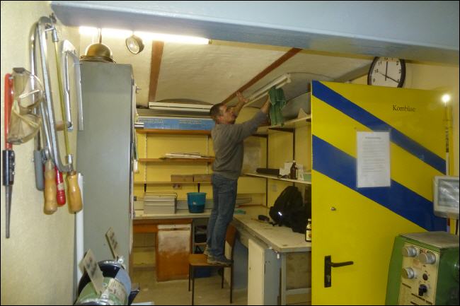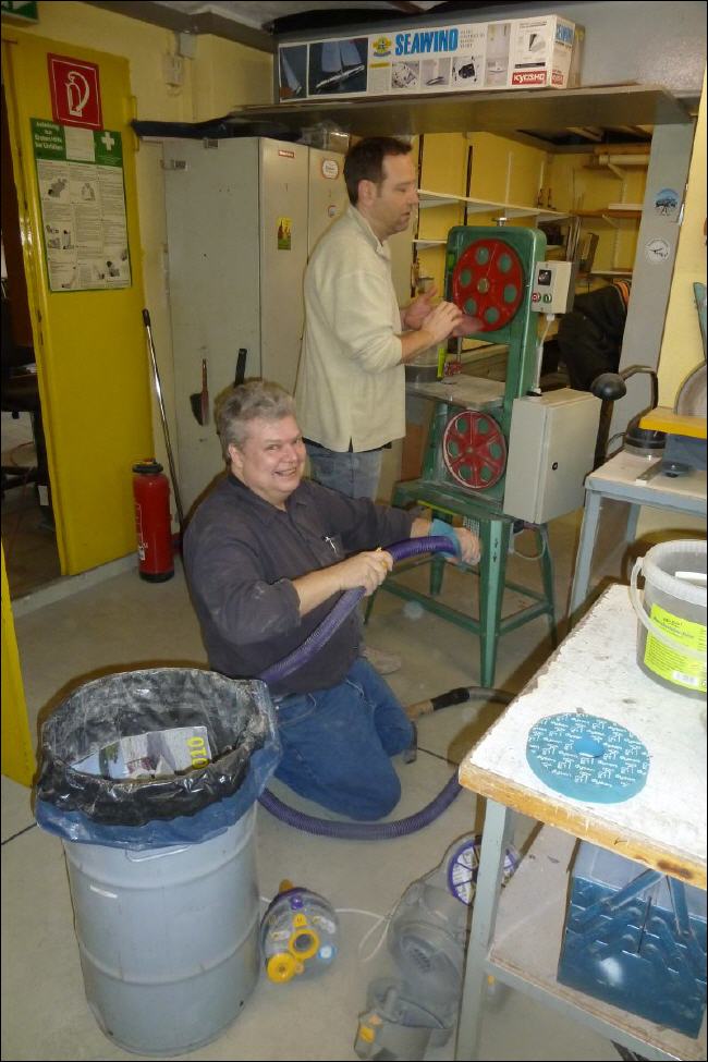 Zehn Mitglieder sind gekommen, um die Werkstatt mal von Grund auf zu Reinigen, was einmal im Jahr dringend nötig ist. Da die meisten in dieser Disziplin schon routiniert sind (weil langjährige Mitglieder) weiß jeder was und vor allem wie es zu tun ist. Das heißt, erst mal die Rohre an der Decke von Staub reinigen, die Leuchtstoff-Röhren säubern, dann Regale und Tisch abwischen und zum Schluss den Boden aufwischen. Auch das reinigen der Maschinen brachte für das ein oder andere Mitglied den Aha-Effekt („Oh, die Bandsäge hat am Antriebsrad ein Sichtfenster“ oder „Wofür ist den der Kopf da, an der Maschine?“). |