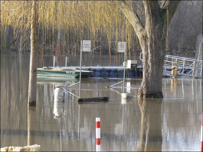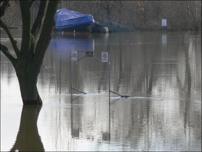 Natürlich wussten wir vorher, das wir kein Modellboot fahren konnten. Nicht wegen dem Wasserstand, sondern, weil die Gemeinde weitläufig abgesperrt hatte und wir keine Lust hatten, die Boote ein paar hundert Meter weit zu tragen. |