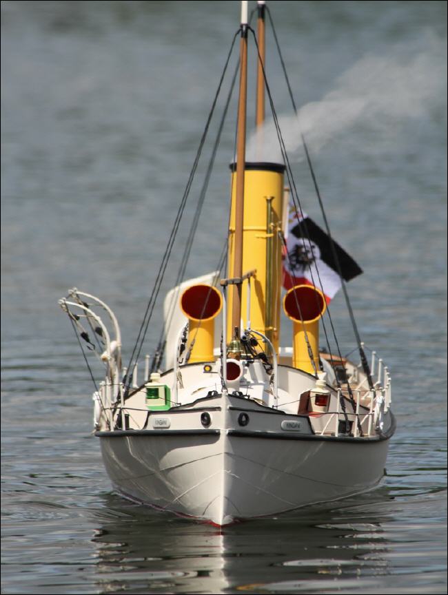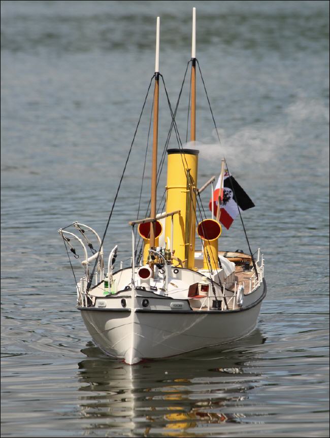 Angeregt durch die Idee eines guten Freundes und Modellbauers (hat die „Kingani“ in 1:50 als Standmodell gebaut und besitzt Fotos und Pläne) sie doch mal als Fahrmodell mit einer Dampfmaschine zu bauen, wurde das Projekt „Kingani“ Anfang 1990 begonnen. |