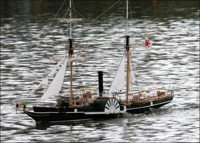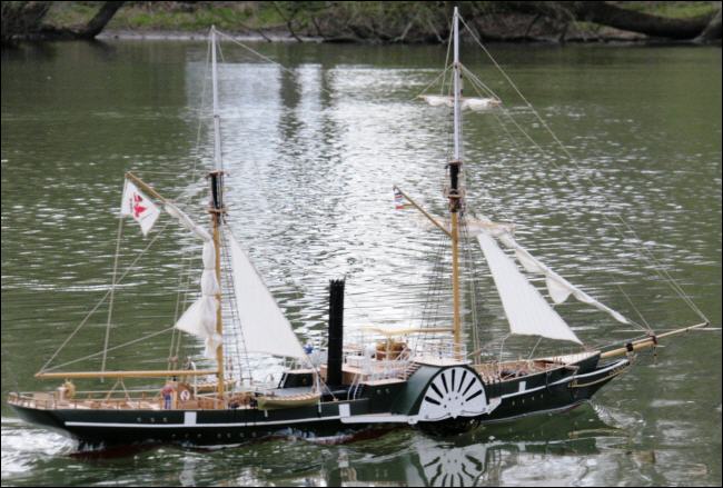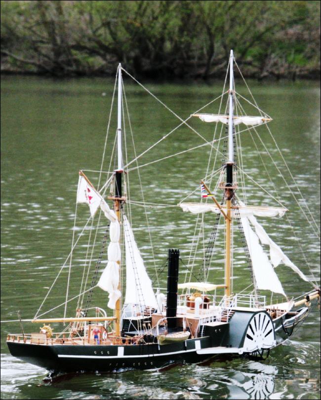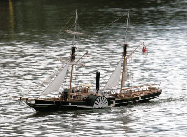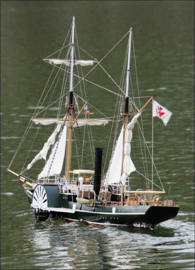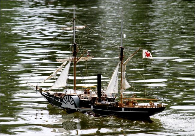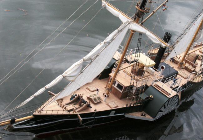 Das Modell zeigt einen typischen Raddampfer mittlerer Größe, die gg. Mitte des 19 Jhdts. auf europäischen Werften gebaut wurde und als Aviso, Passagierschiff oder ähnliches von Marine oder Privatreedern eingesetzt wurden.