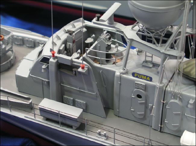 Die Klasse 142, auch „Zobel-Klasse“, stellte eine Weiterentwicklung der Klasse 140/141, Jaguar-Klasse“ dar. Die Boote waren von 1961-1984 in Dienst und wurden durch die Boote der Klasse 143, „Gepard-Klasse“ ersetzt. Der Rumpf war in Komposit-Bauweise hergestellt, die Aufbauten bestanden aus Leichtmetall. Durch eine geschlossene Brücke bestand ABC-Schutz für die Besatzung. Äußerlich waren die Schnellboote durch das kugelförmige Radom des Feuerleitradars leicht erkennbar. Während des Kalten Krieges war es die Aufgabe der Boote die Ostseezugänge zu sichern und die Küste gegen Landungskräfte zu sichern. Anfang der 80-ziger Jahre wurden die Schnellboote nach und nach außer Dienst gestellt. Das Model der „Puma“ basiert lediglich auf den Rumpf und Teile der Aufbauten der „Wiesel“ der Fa. Graupner. Diese wurden zusätzlich mit GfK innen laminiert und mit Details ergänzt. Alle weiteren Teile sind separat nach Plänen und Fotos entstanden.