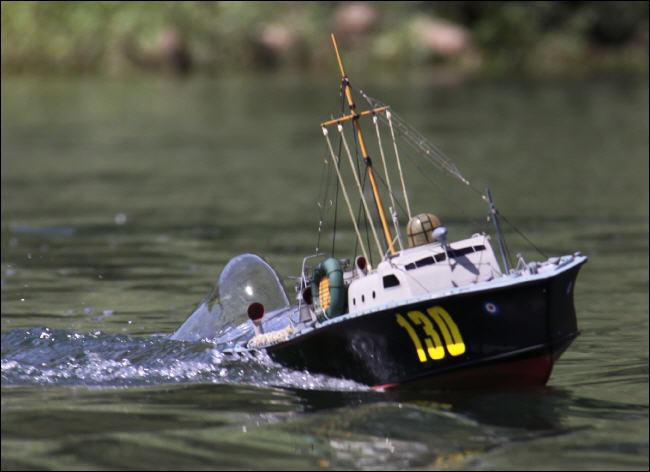 Der Rumpf ist aus GFK, das Deck aus Holz und die Aufbauten sind ein Tiefziehteil aus Polystyrol. Alle Beschläge sind aus Resin oder Zinnguss und benötigen eine intensive Nacharbeit. Lackiert habe ich das Modell mit Mattfarben von Revell die zum schutz noch einen kompletten Überzug mit matten Klarlack bekommen haben.