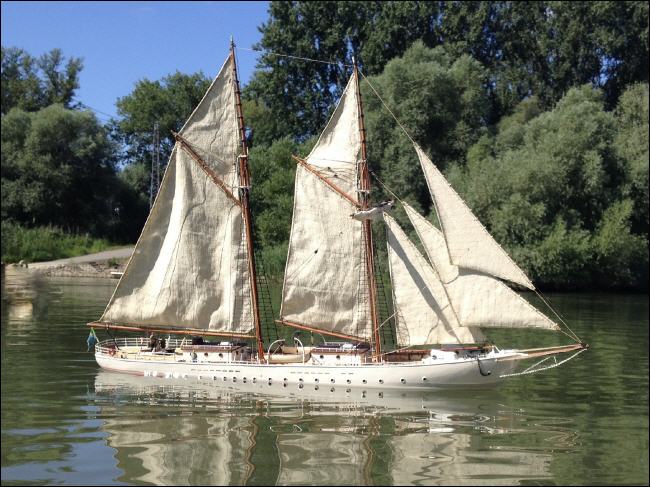 Im frühen 18ten Jhdt. entwickelte sich, ausgehend von Nordamerika ein neuer Schiffstyp. Der Schoner, ein kleines schnellsegelndes Schiff mit 2 Masten wobei der hintere Mast höher war als der Vordere. An beiden Masten wurden große Gaffelsegel gefahren. Das Hintere ebenfalls größer, um bei Vorwindkursen einen höheren Windeinfall zu haben. Ein weiterer Vorteil waren die einfachere Bedienbarkeit und höhere Wendigkeit. Zusätzlich erhielt der Fockmast 1 oder 2 Rahsegel über dem Gaffelsegel. |